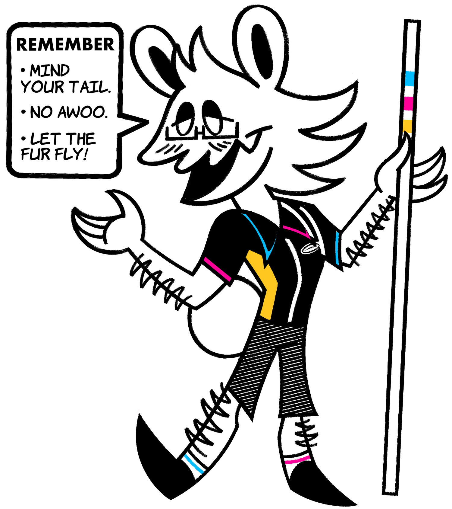 Coloring - The lined piece with its final colors. At this stage, I can change inaccurate markings, eye colors, hair colors, etc. ie; changing the shape and color of a character's stripes.