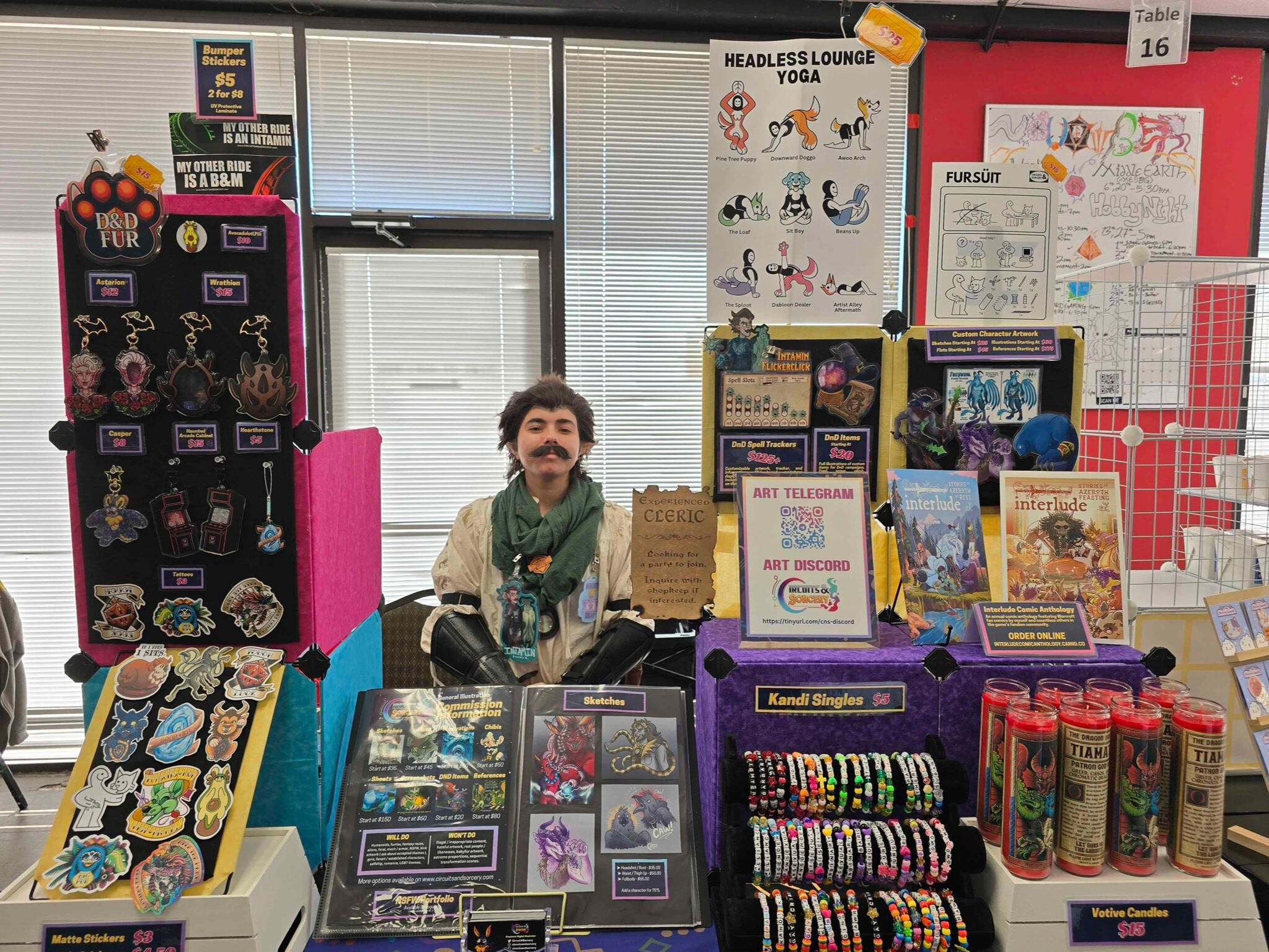 My name is Casper Cielo of Trackminder, and my body of work focuses on exploring high fantasy, roadside America, themed entertainment, and anthropomorphics through digital illustration.In 2024, I began vending at dedicated artist events such as local markets and conventions, with a vested interest in advertising custom work that can be produced at my table alongside ready-made products that showcase both original and fandom-inspired designs.I am proud to say that I have over a hundred publicly documented and completed client projects spanning the past six years, and believe that I have a lot to offer in collective spaces that showcase the unique creativity of small freelance artists like myself.